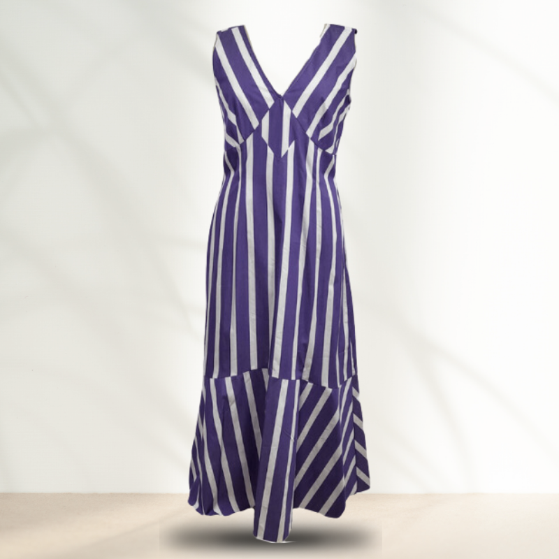 Le tissu en coton léger est à la fois doux et respirant, ce qui en fait un choix idéal pour les journées chaudes. La robe est cintrée pour mettre en valeur la silhouette, créant une ligne flatteuse qui souligne les courbes naturelles du corps.